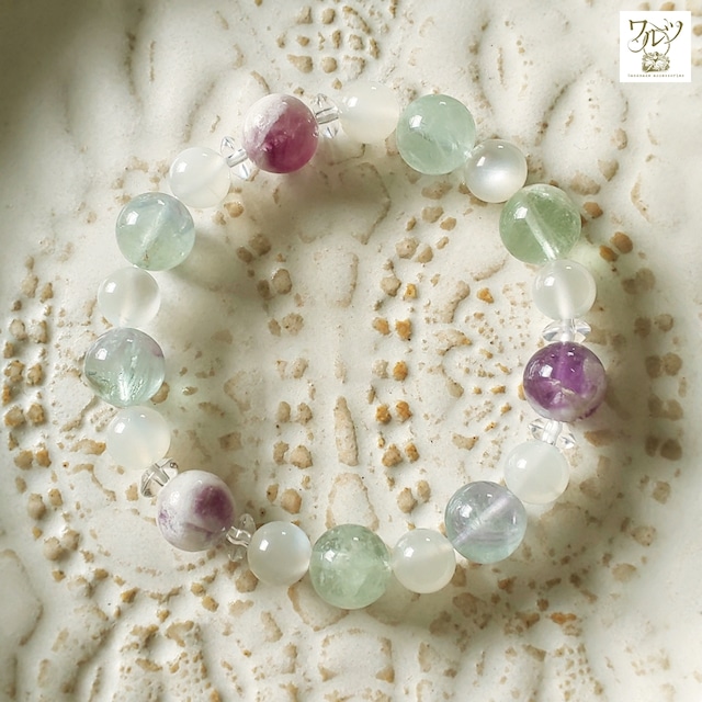 【15cm】エンジェルフェザー フローライト×ムーンストーン ブレスレット