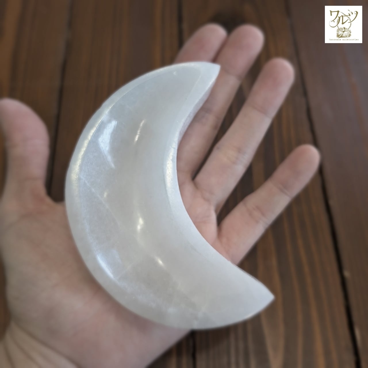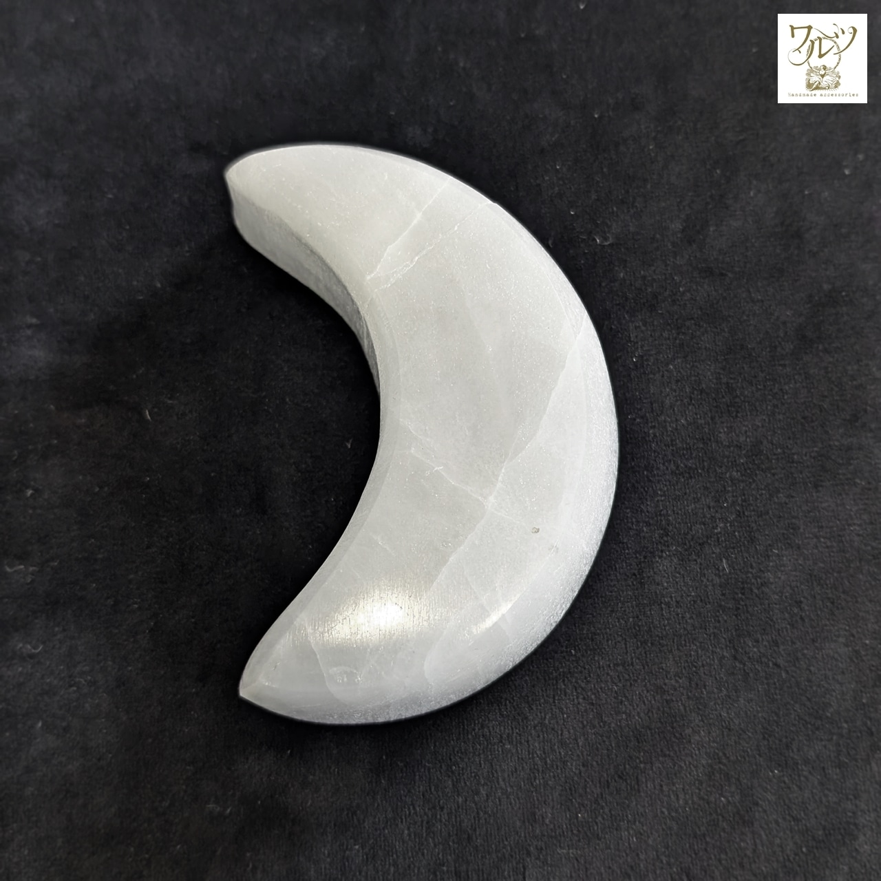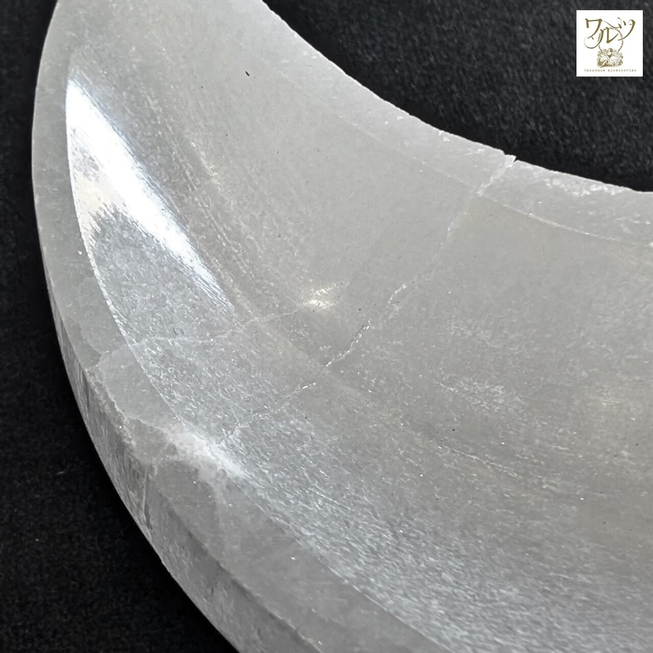月の形に彫られたセレナイトの皿。