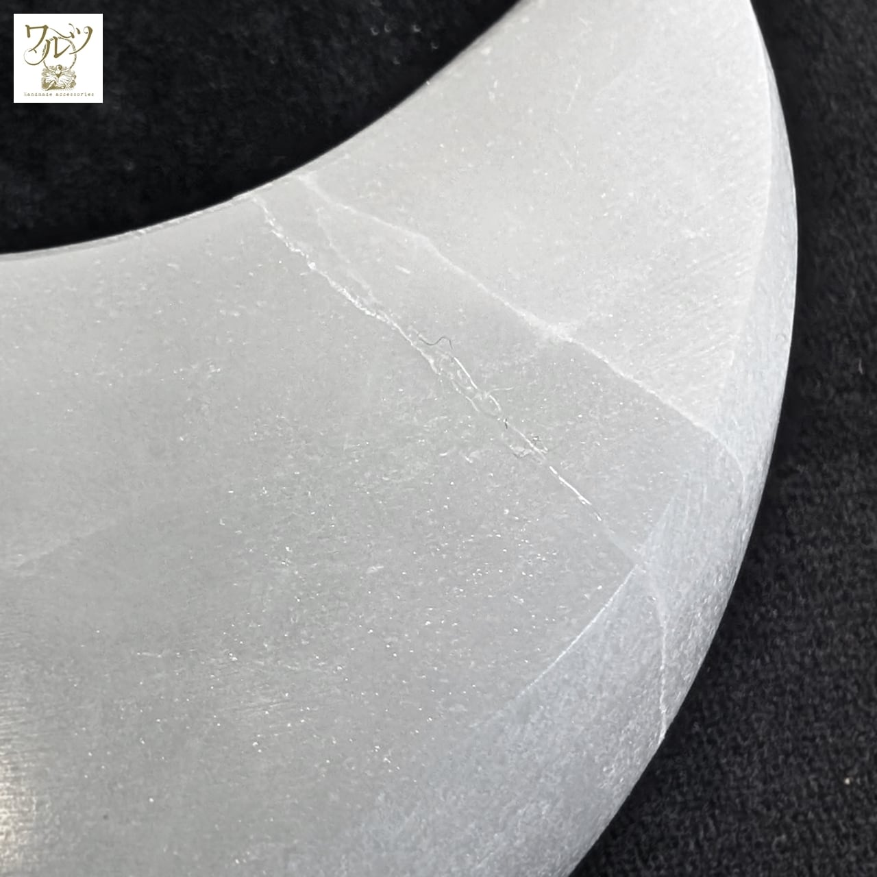 セレナイトは湿気や温度変化・乾燥でも傷む可能性があります。湿気の多い場所や窓際などには飾らないようにしてください。