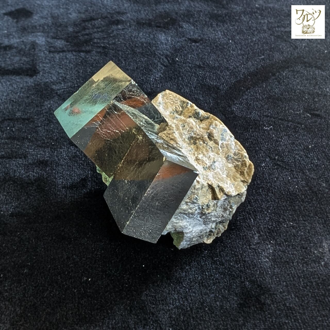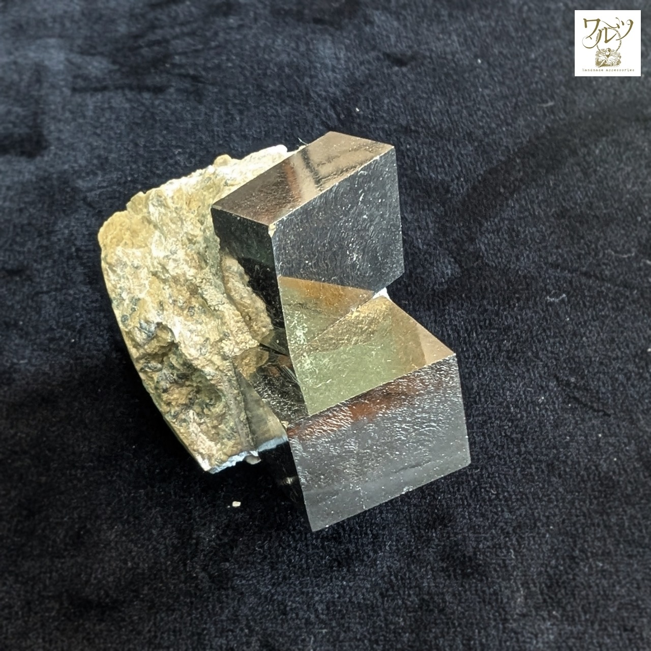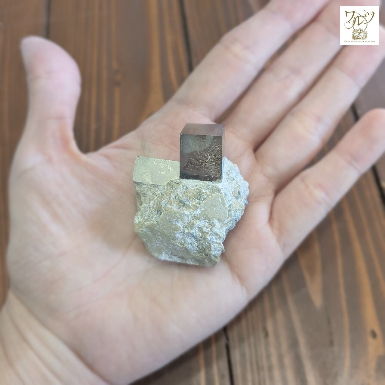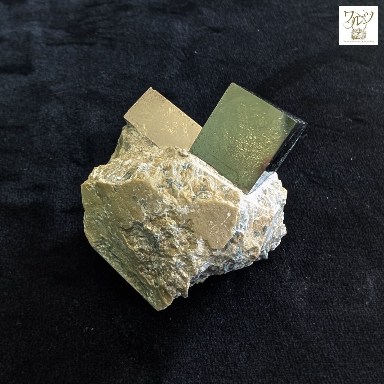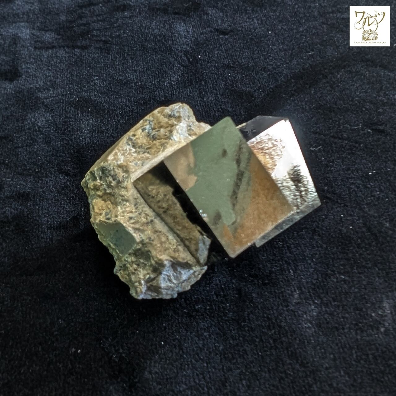 自然にできたサイコロのような六面体が美しいパイライト。2個が密着しています。