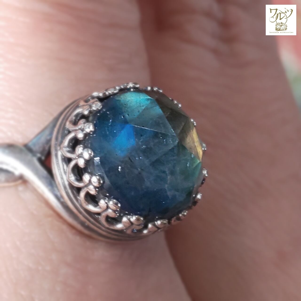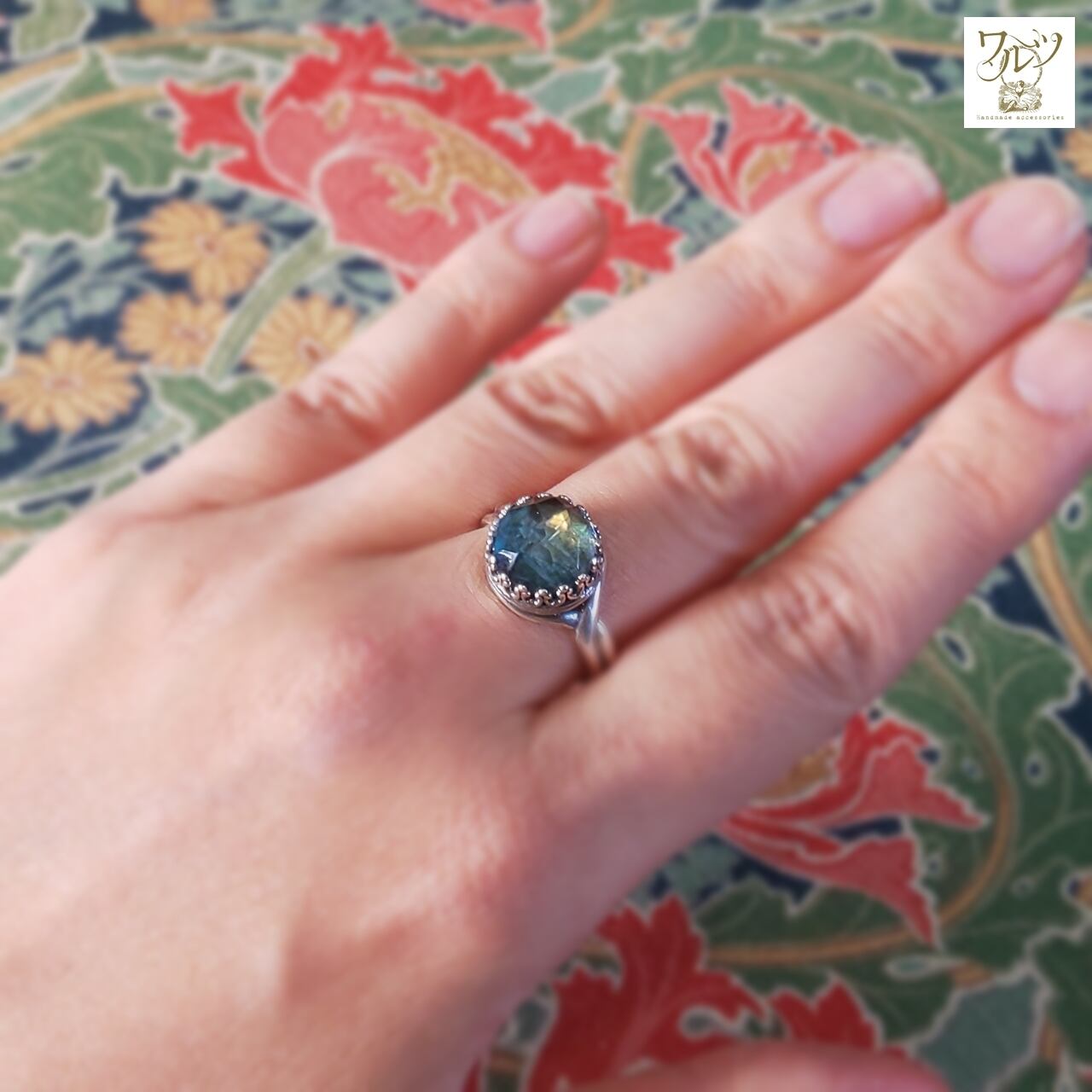 【フリーサイズ】クラウン リング・ラブラドライト×クリスタル #11【17号前後】