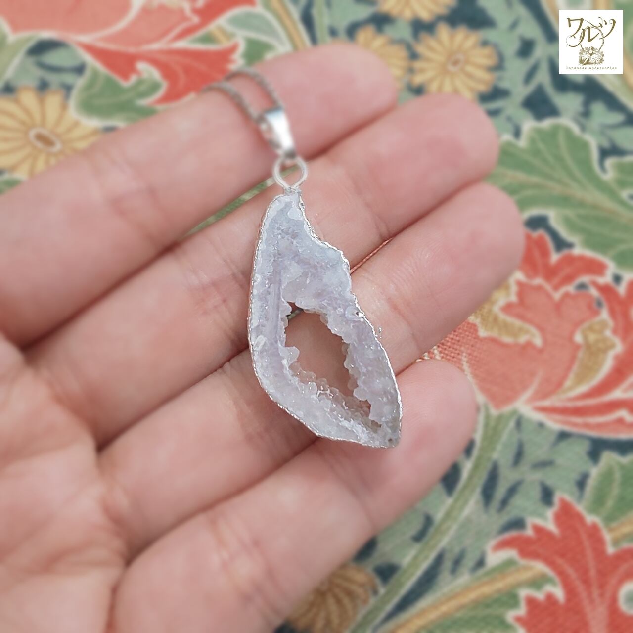 内側のキラキラと光る結晶は自然のものです。着けるだけでなく見ても楽しいアクセサリーです。