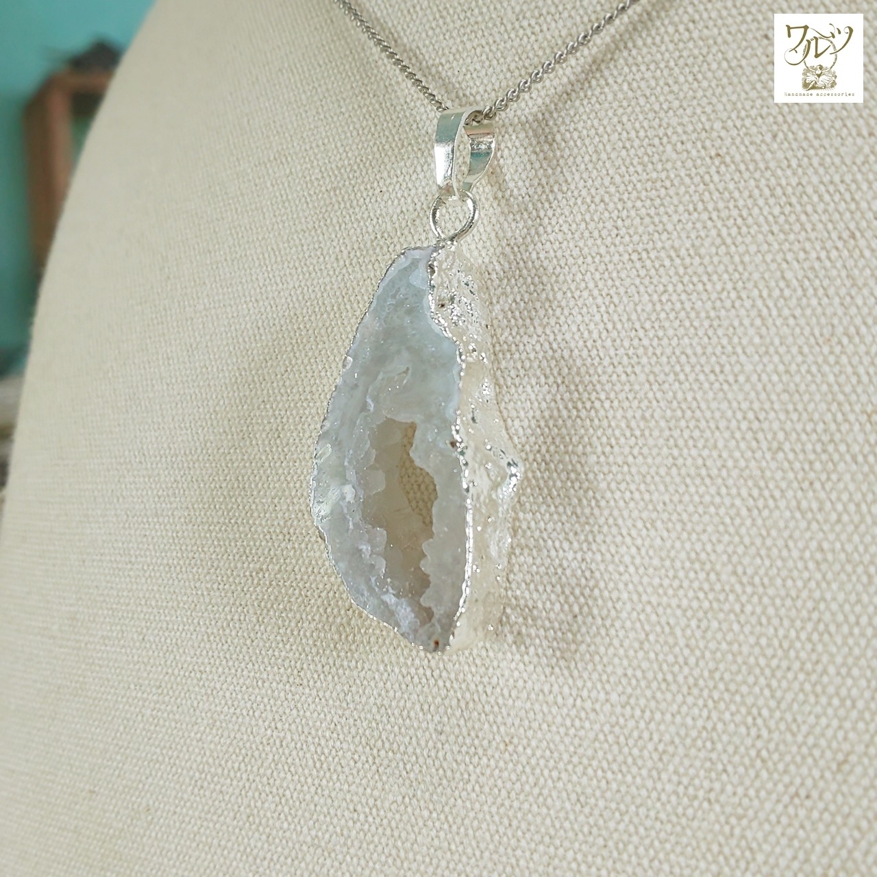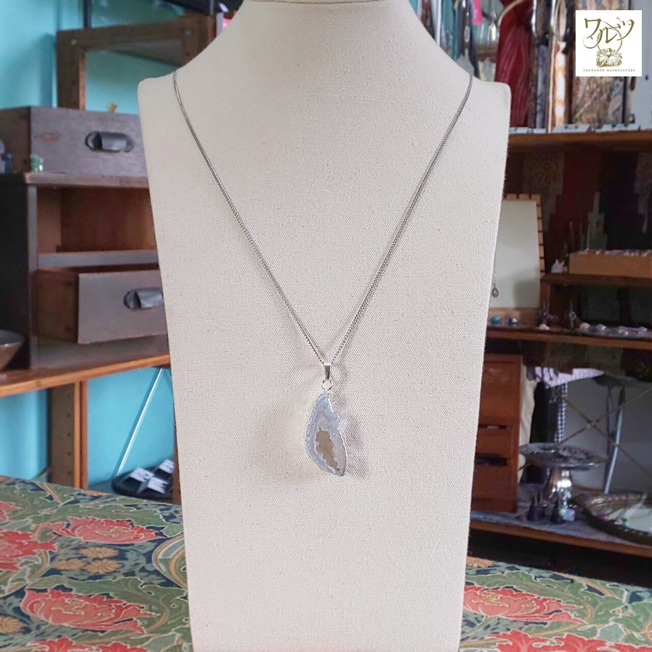 【50cm】アゲート ジオード ネックレスA【サージカルステンレス】