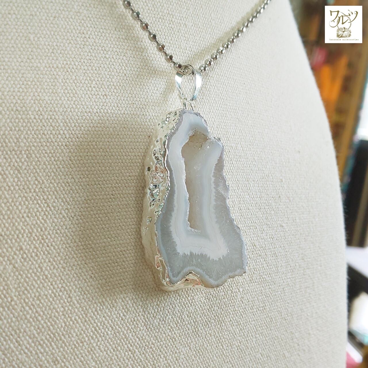 【60cm】アゲート ジオード ネックレス【サージカルステンレス】