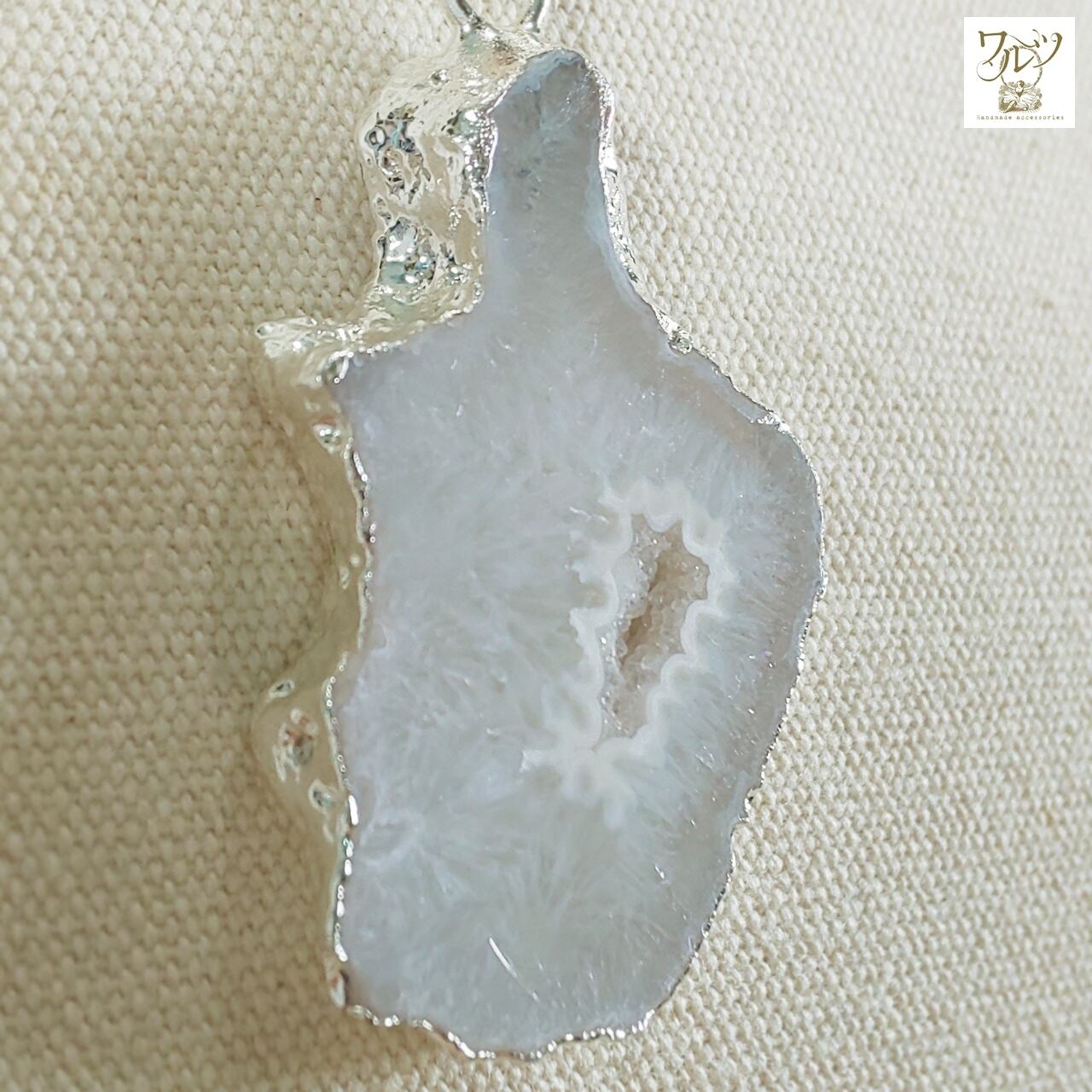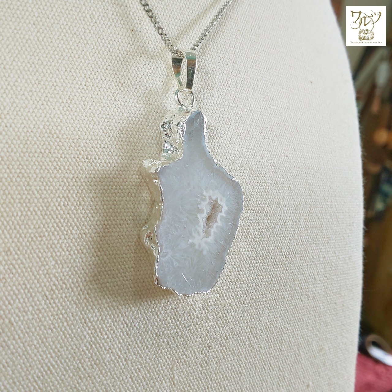 【50cm】アゲート ジオード ネックレスC【サージカルステンレス】