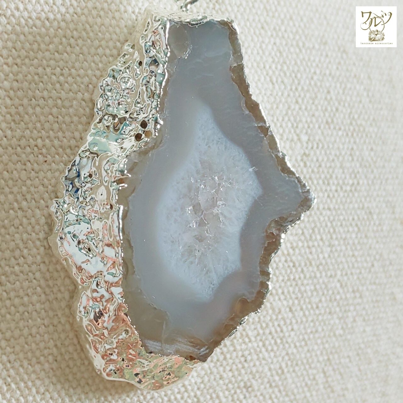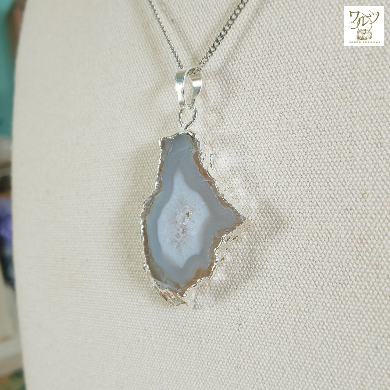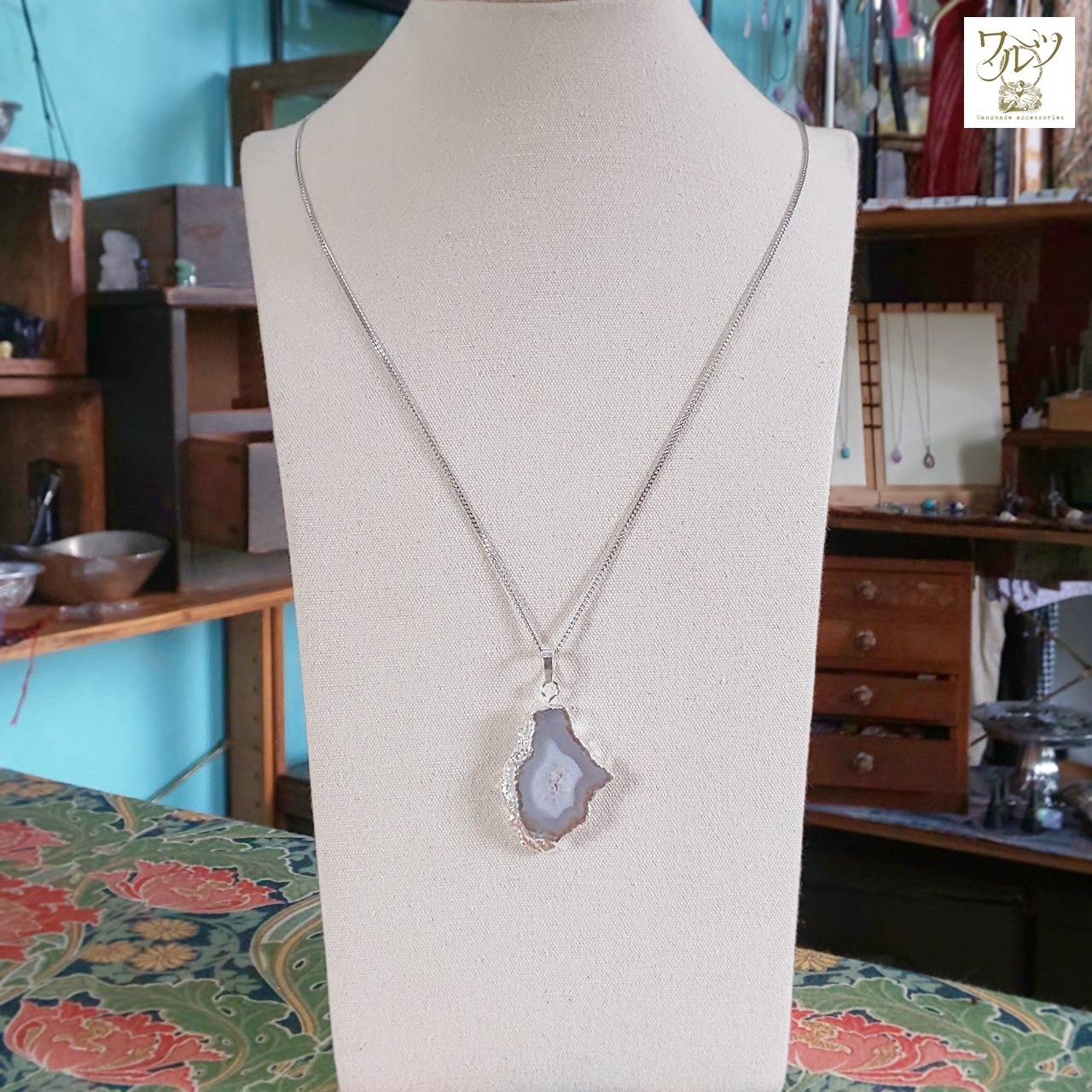 【50cm】アゲート ジオード ネックレスD【サージカルステンレス】