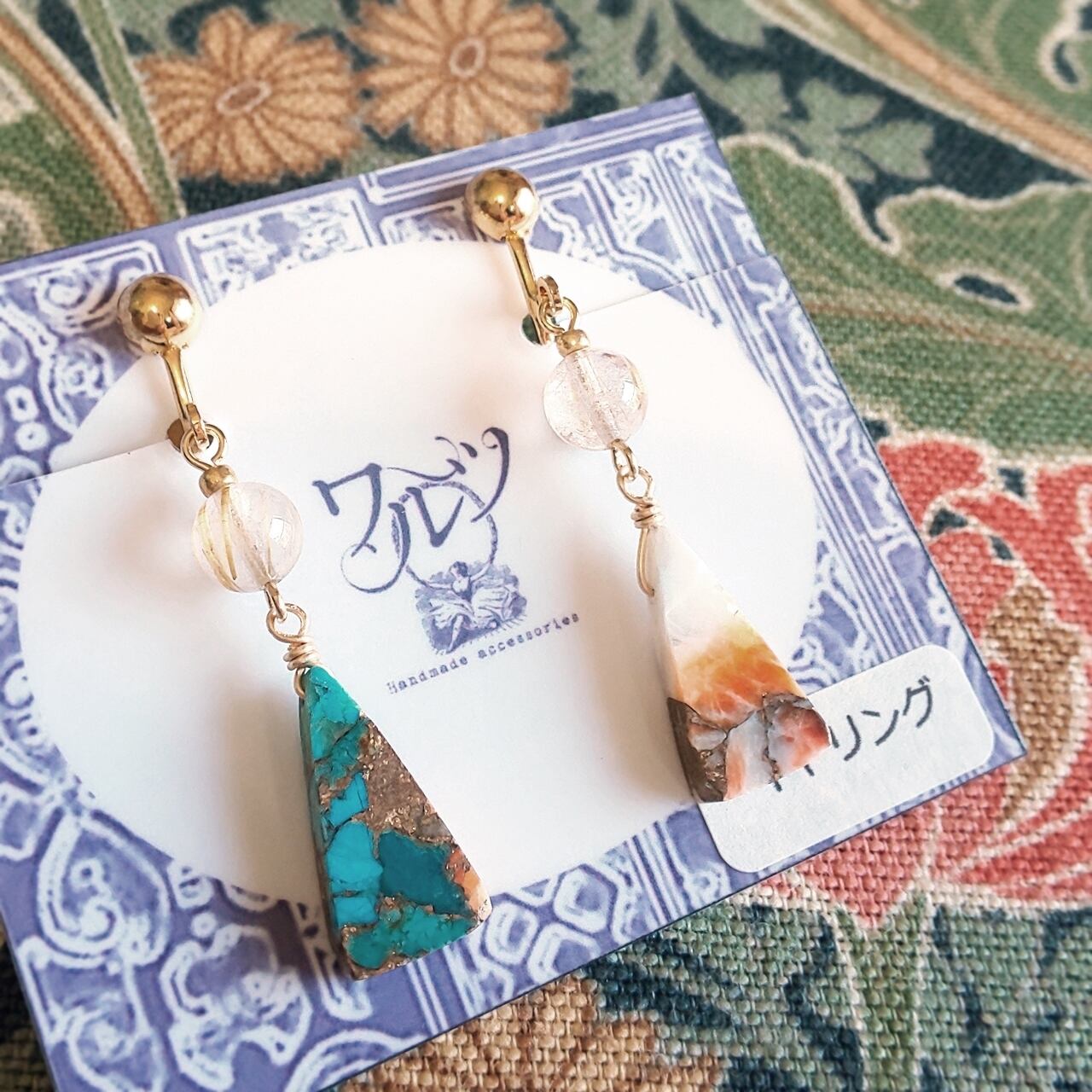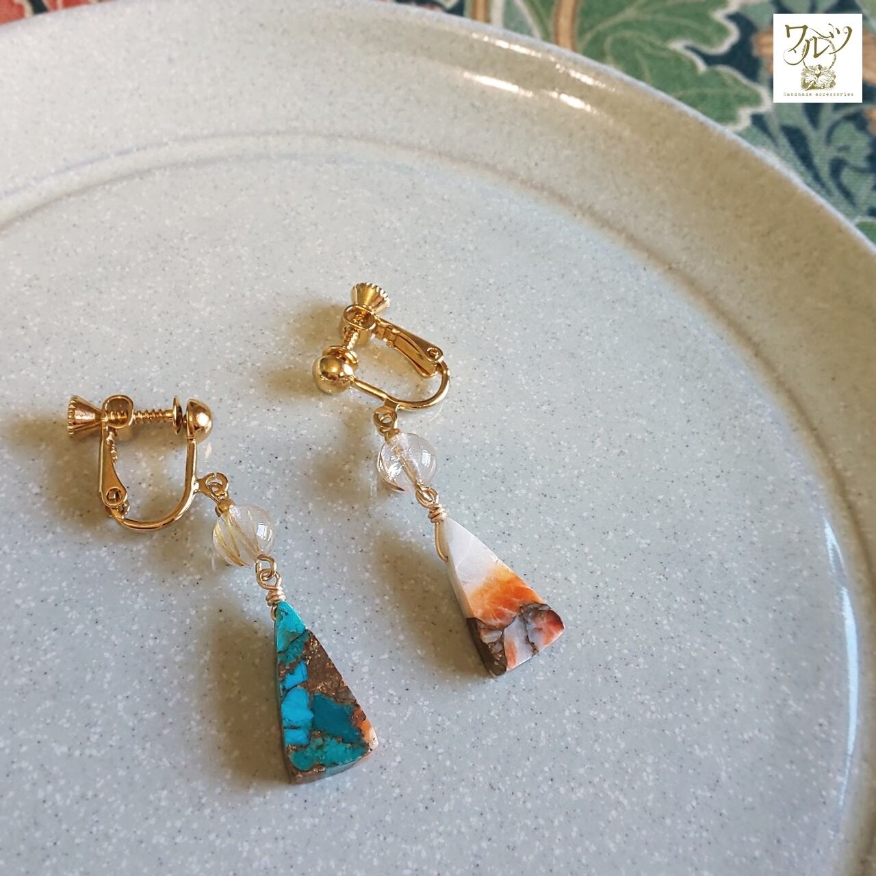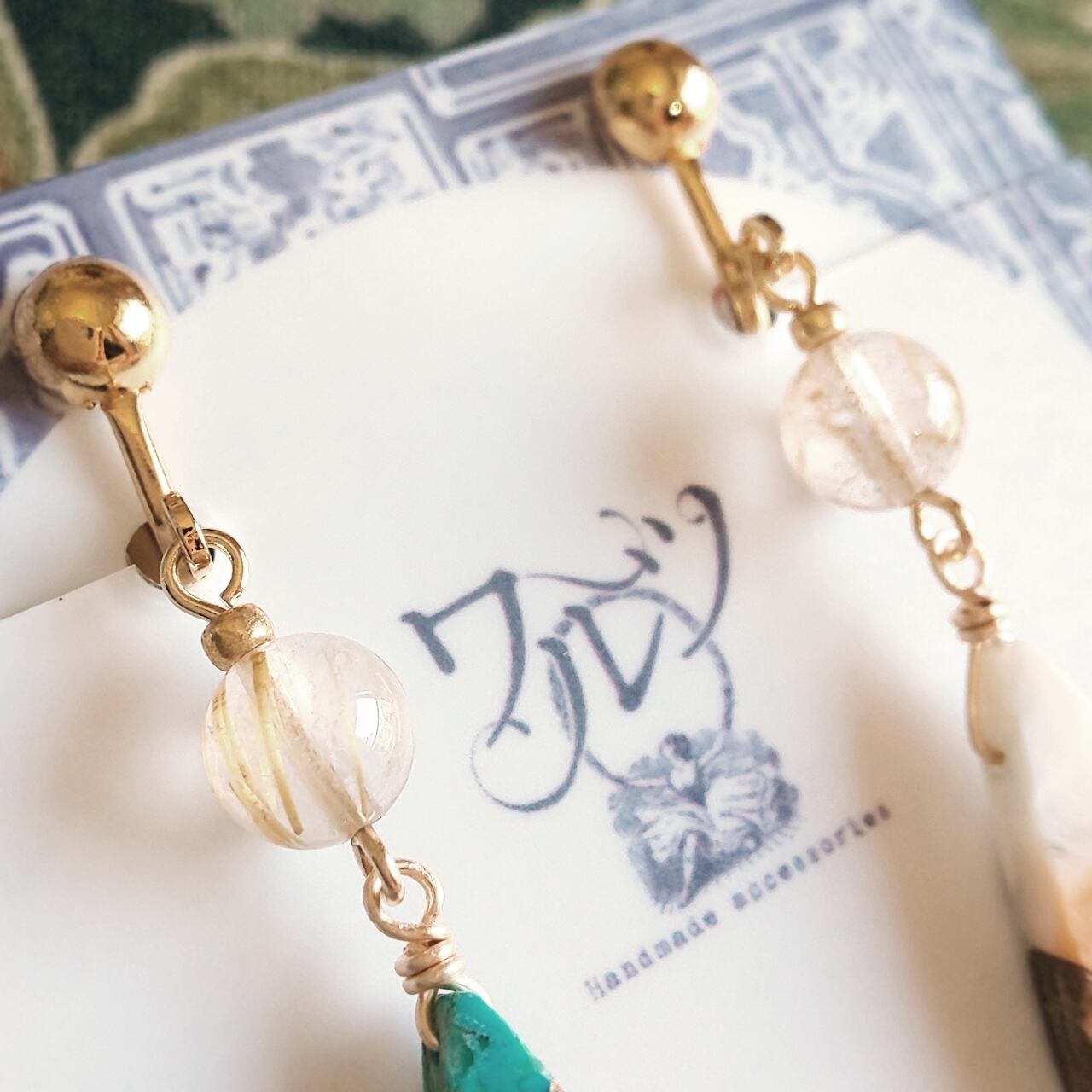 オイスターカッパー ターコイズとルチルクォーツのイヤリング【ピアス変更可】