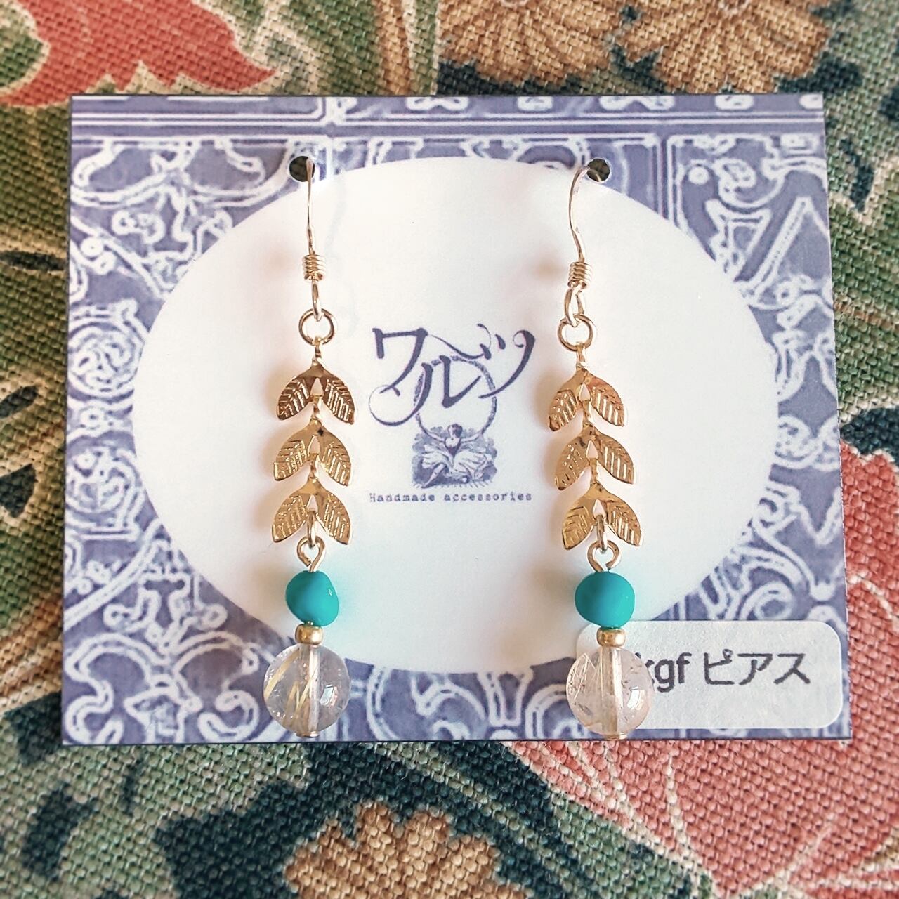 スリーピングビューティー ターコイズとリーフのピアス【14Kkgfピアス】