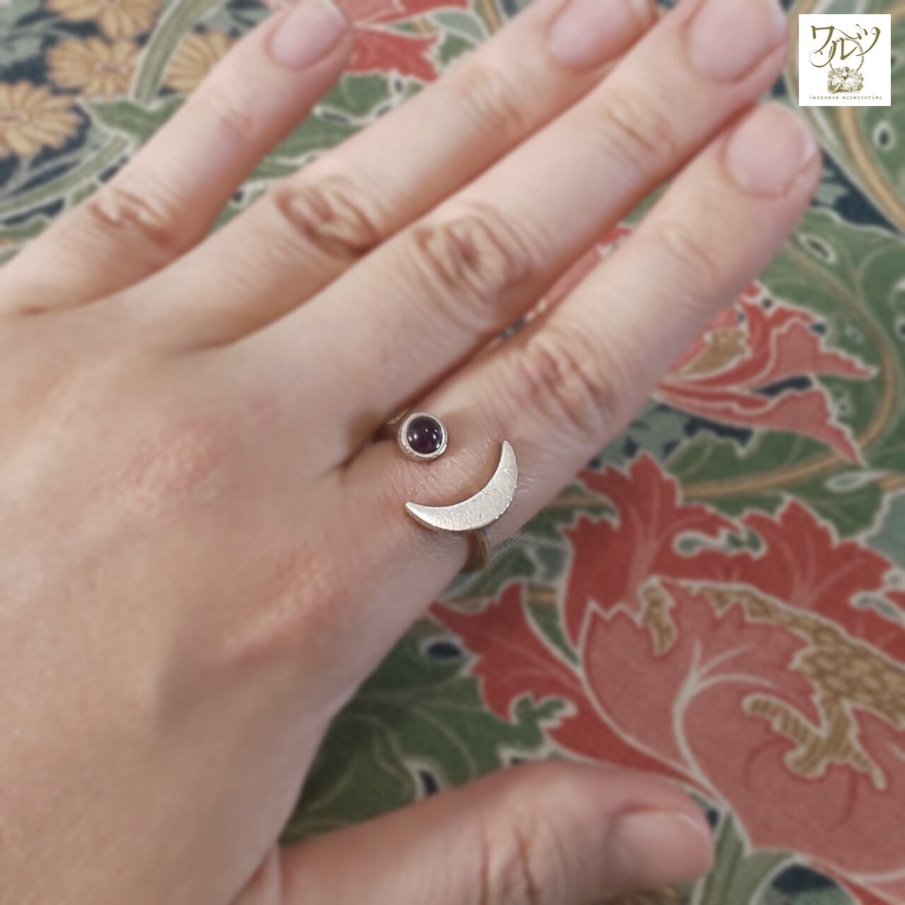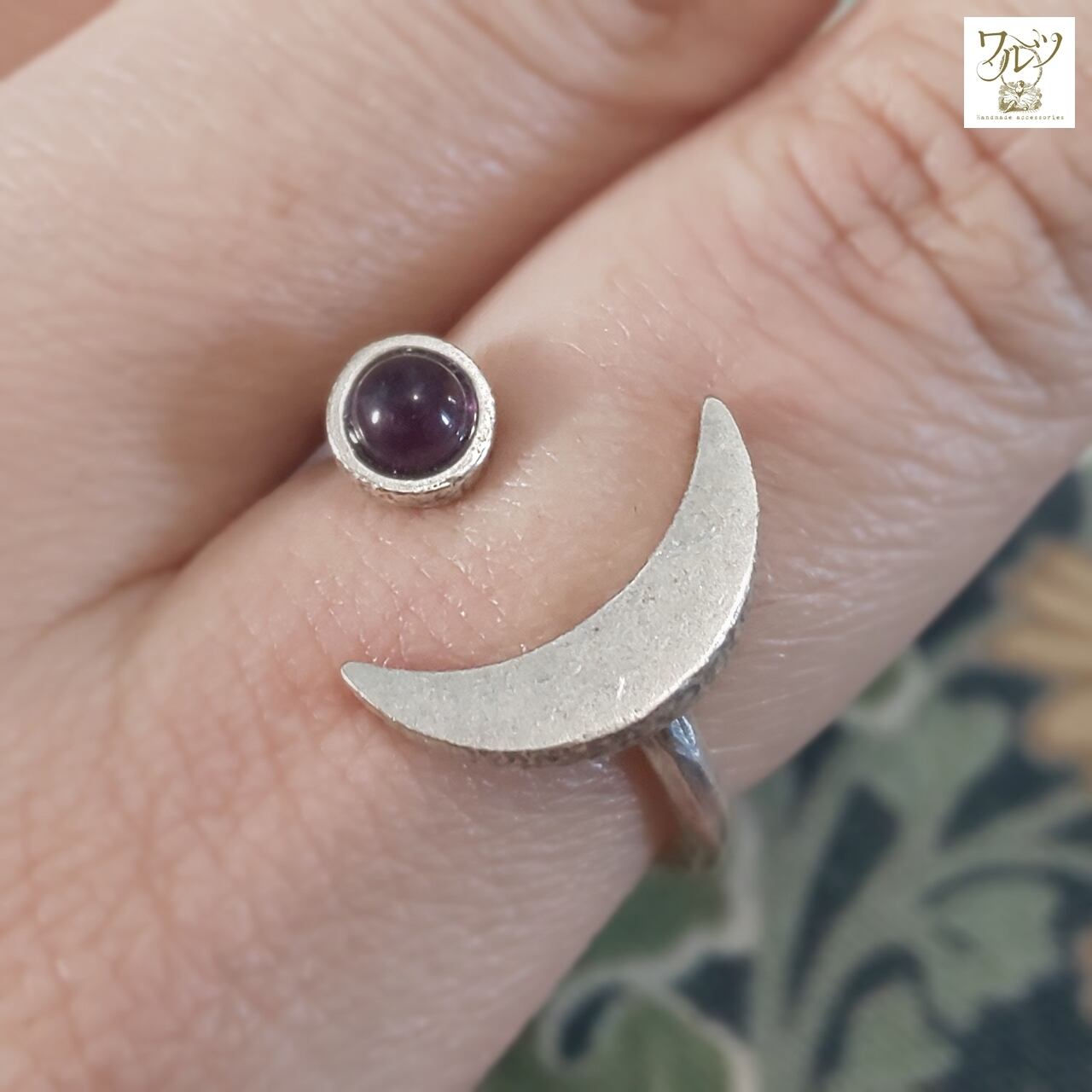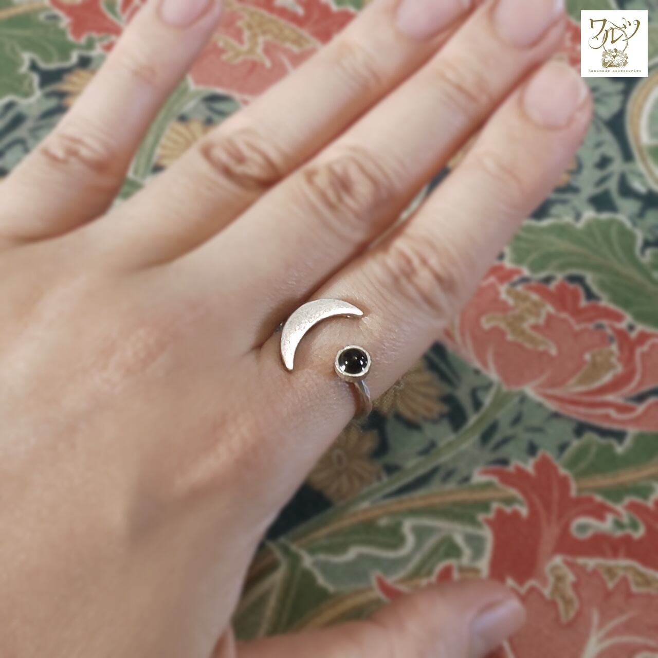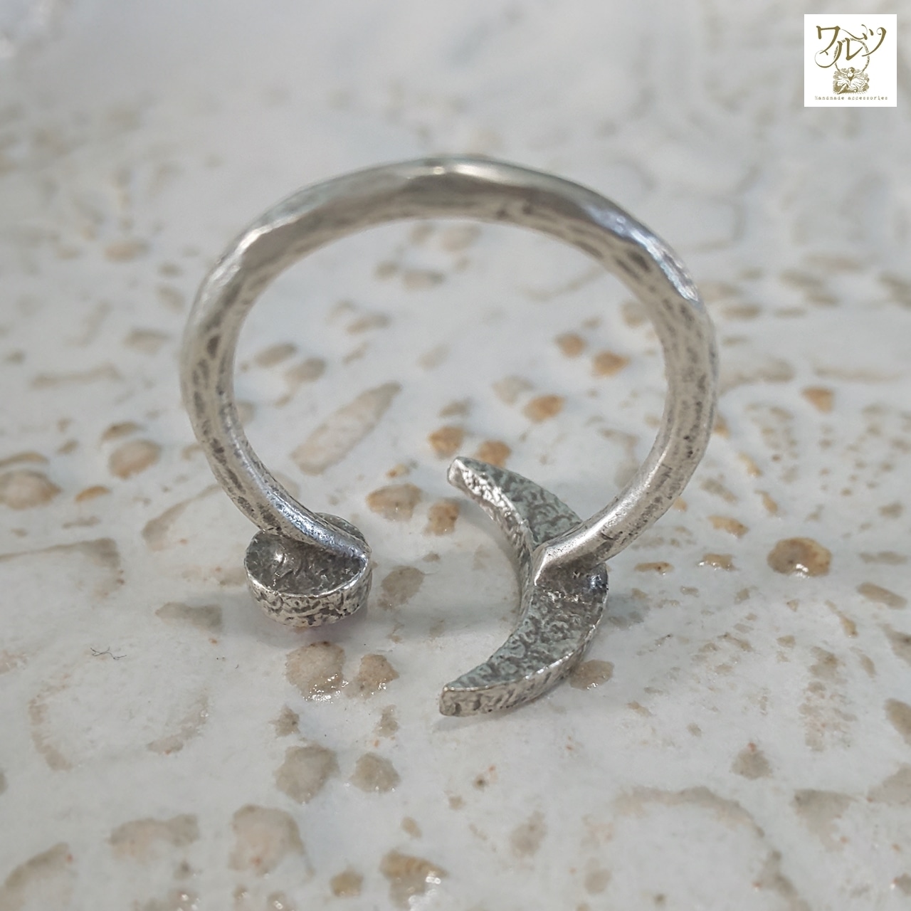 【サイズ】石の直径 約4mm、月の長さ 約15mm、リングサイズ 14号~フリー
