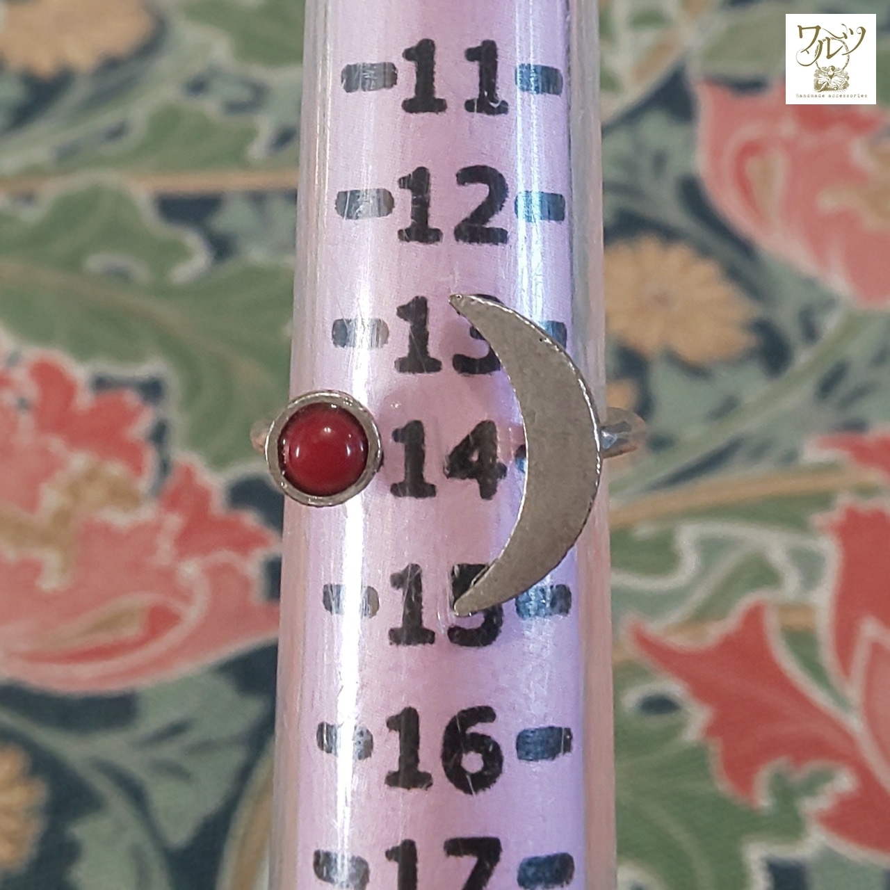 【サイズ】石の直径 約4mm、月の長さ 約15mm、リングサイズ 14号~フリー