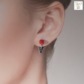 金属色は銀色です。イヤリングは棒の部分が1cmほど見えます。