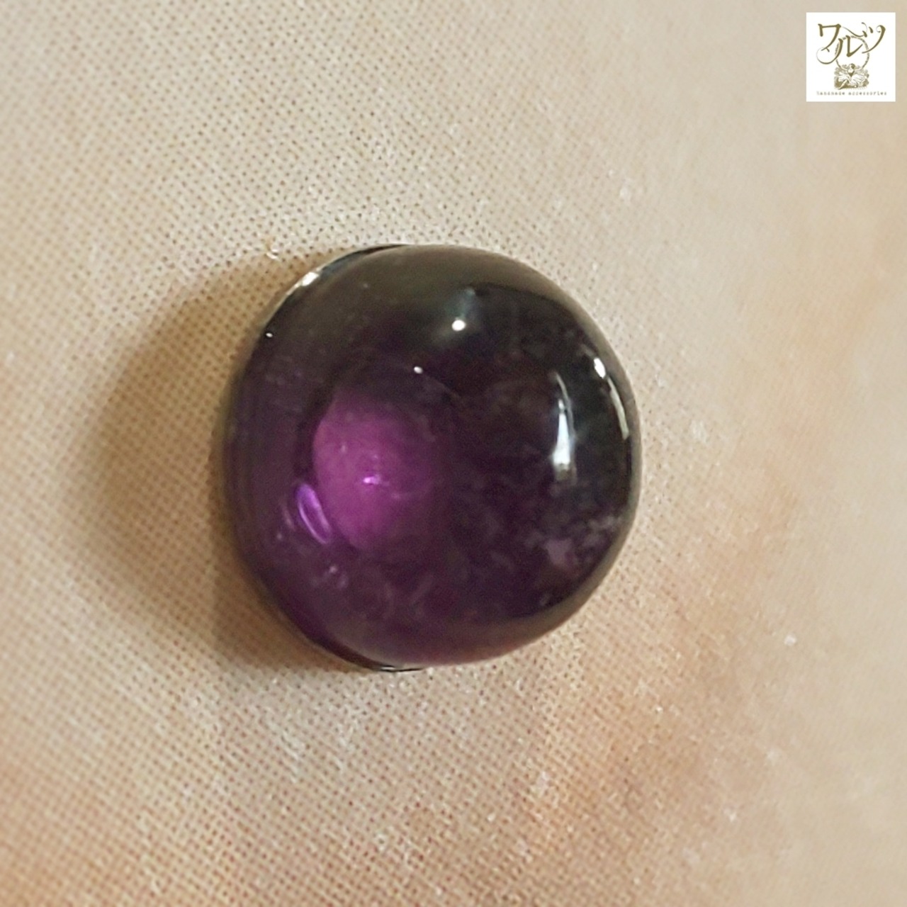 落ち着いた紫色のアメジストのアクセサリー。石の表面はつるんとしています。