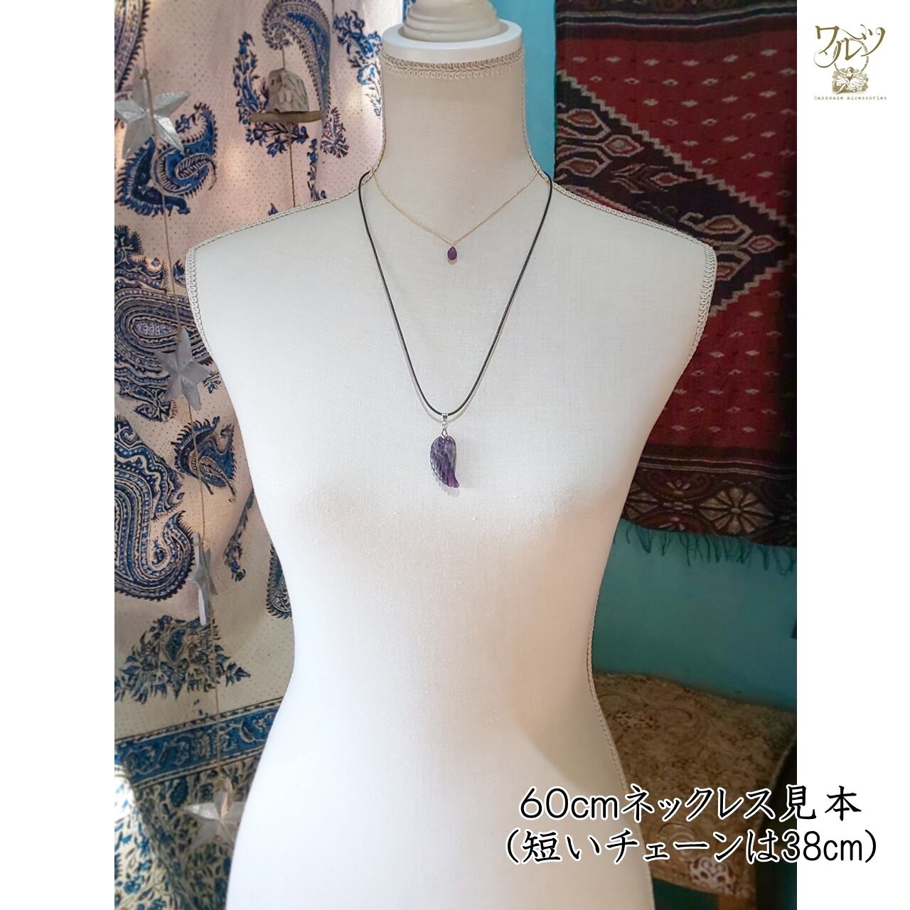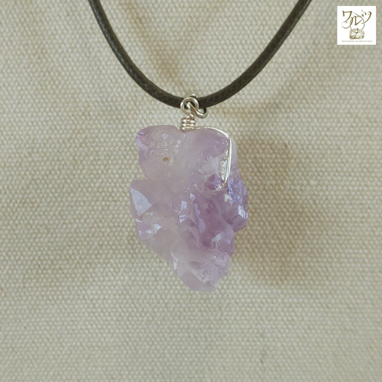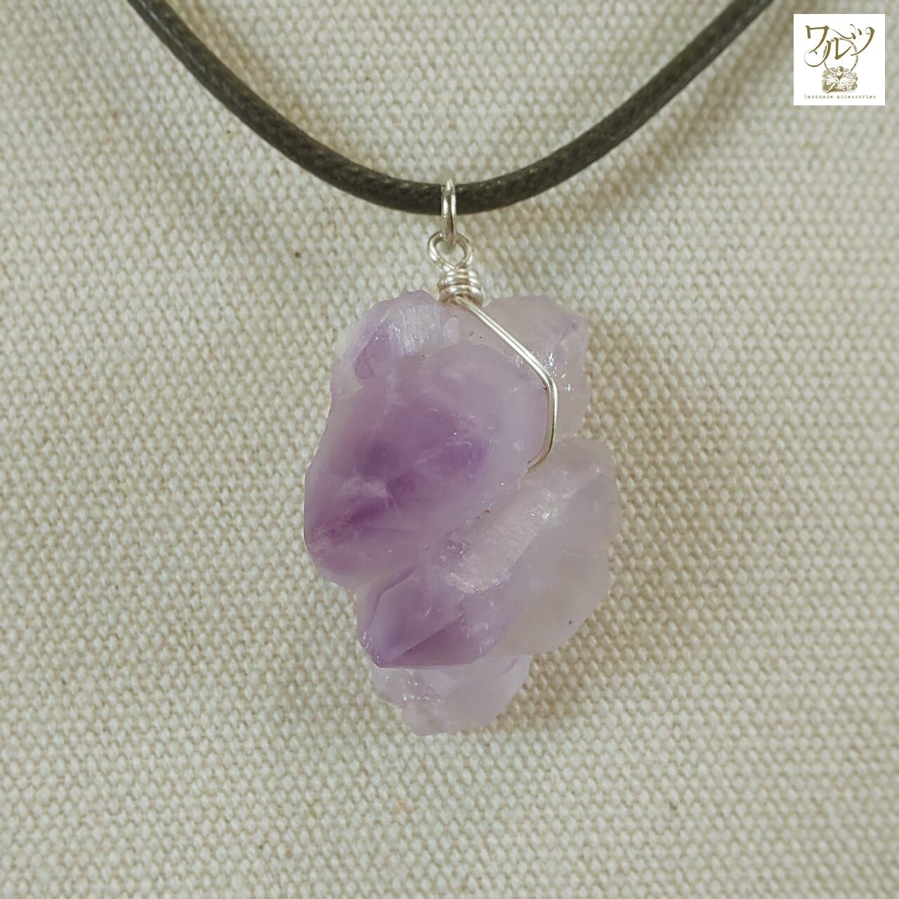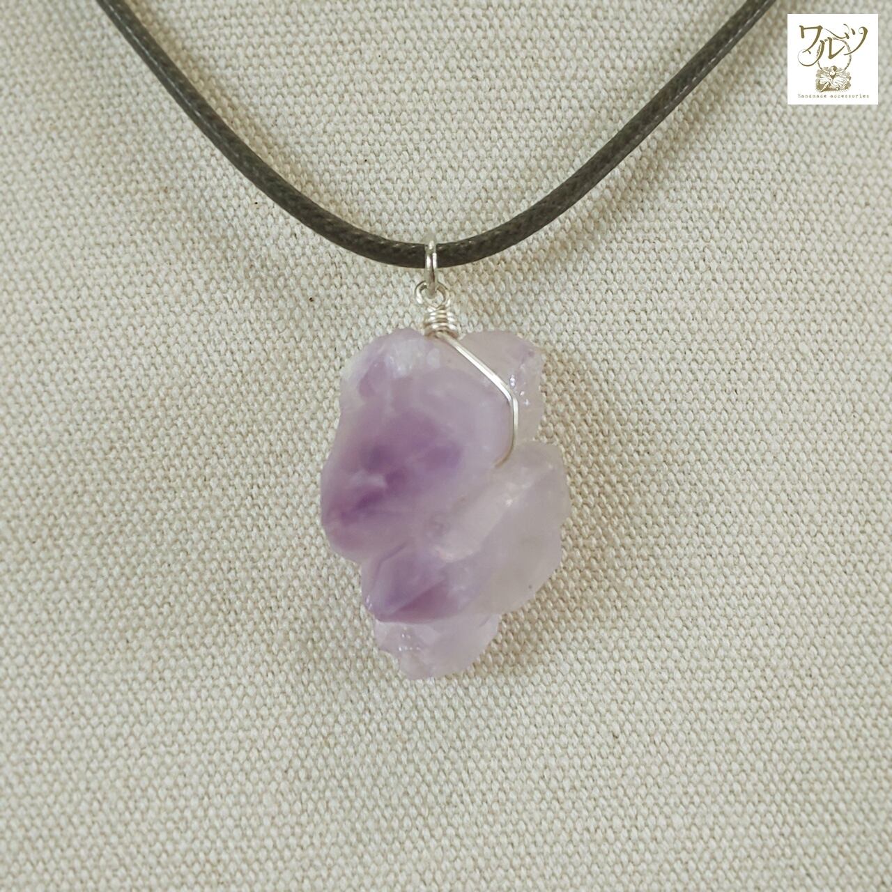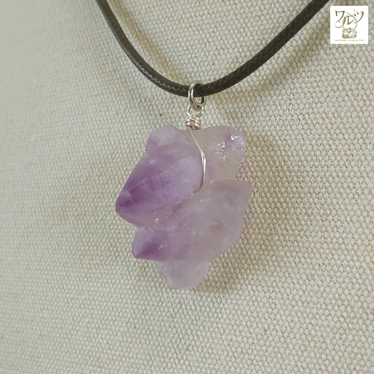 アメジストのネックレス。原石のままで表面は磨かれていません。