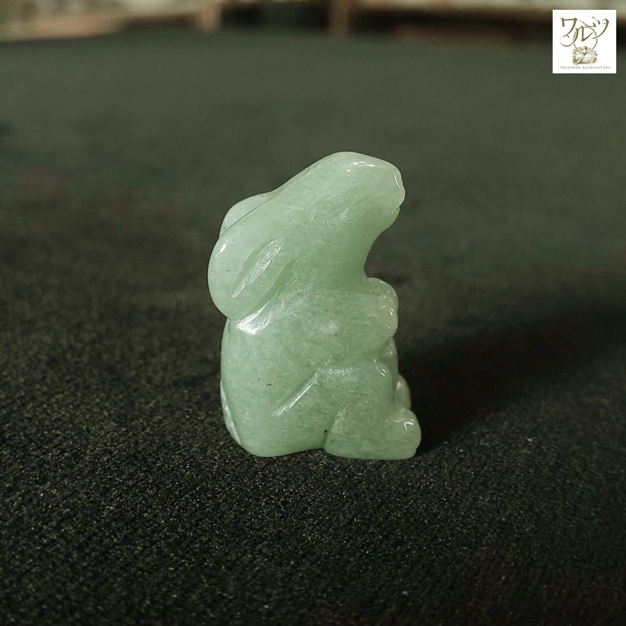 お月見をするように上を見上げたウサギの形に彫刻されたアベンチュリンの置物。