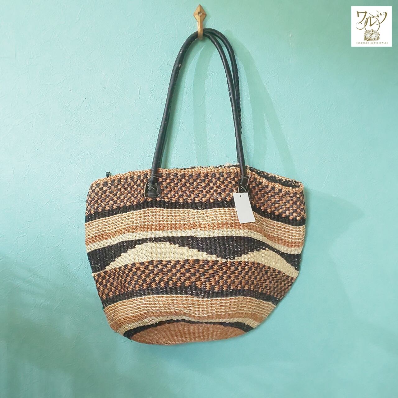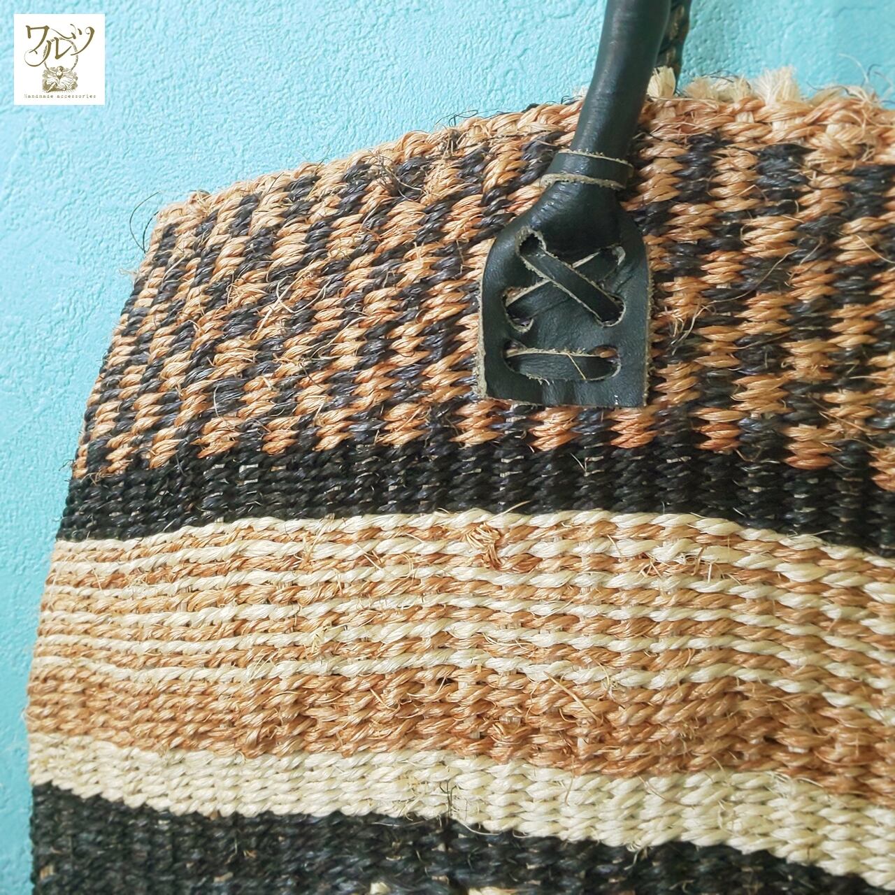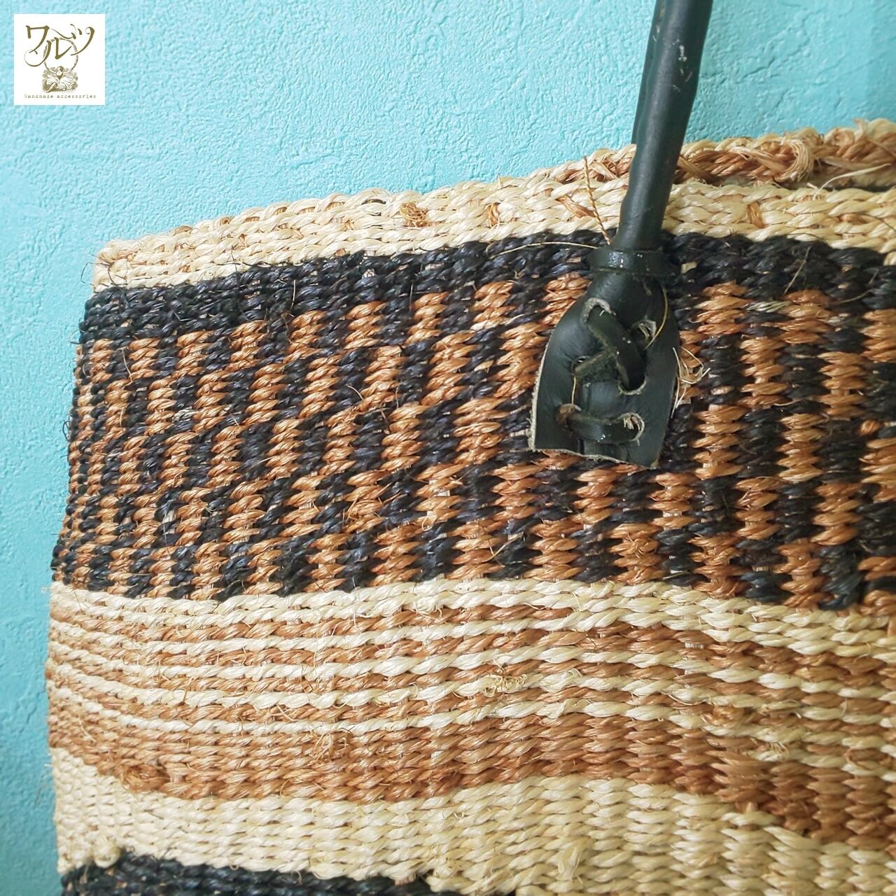 ケニアの伝統技法で編まれたバオバブ繊維のかごバッグ。
