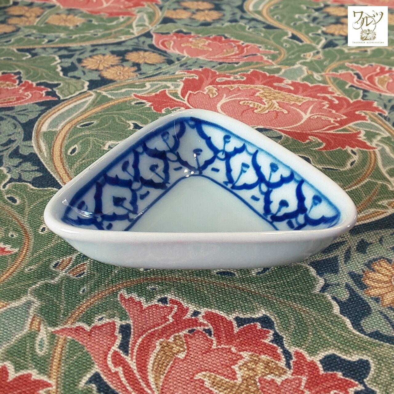 タイ伝統のパイナップル柄の三角豆皿。醤油や薬味入れにちょうど良いサイズです。