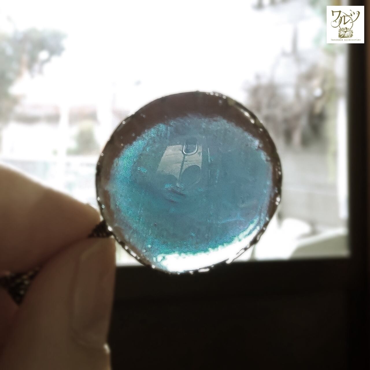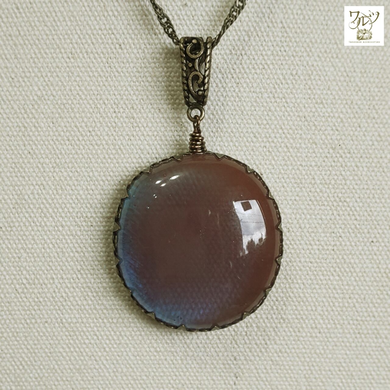 一見 茶色や赤紫のようですが、透かすとターコイズブルーに見えます。
