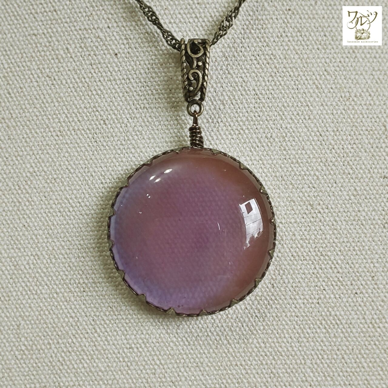 【サイズ】ガラス部分の直径 約2.7×2.7cm 厚み7mm、ネックレスの長さ 約65cm+アジャスター 約6cm