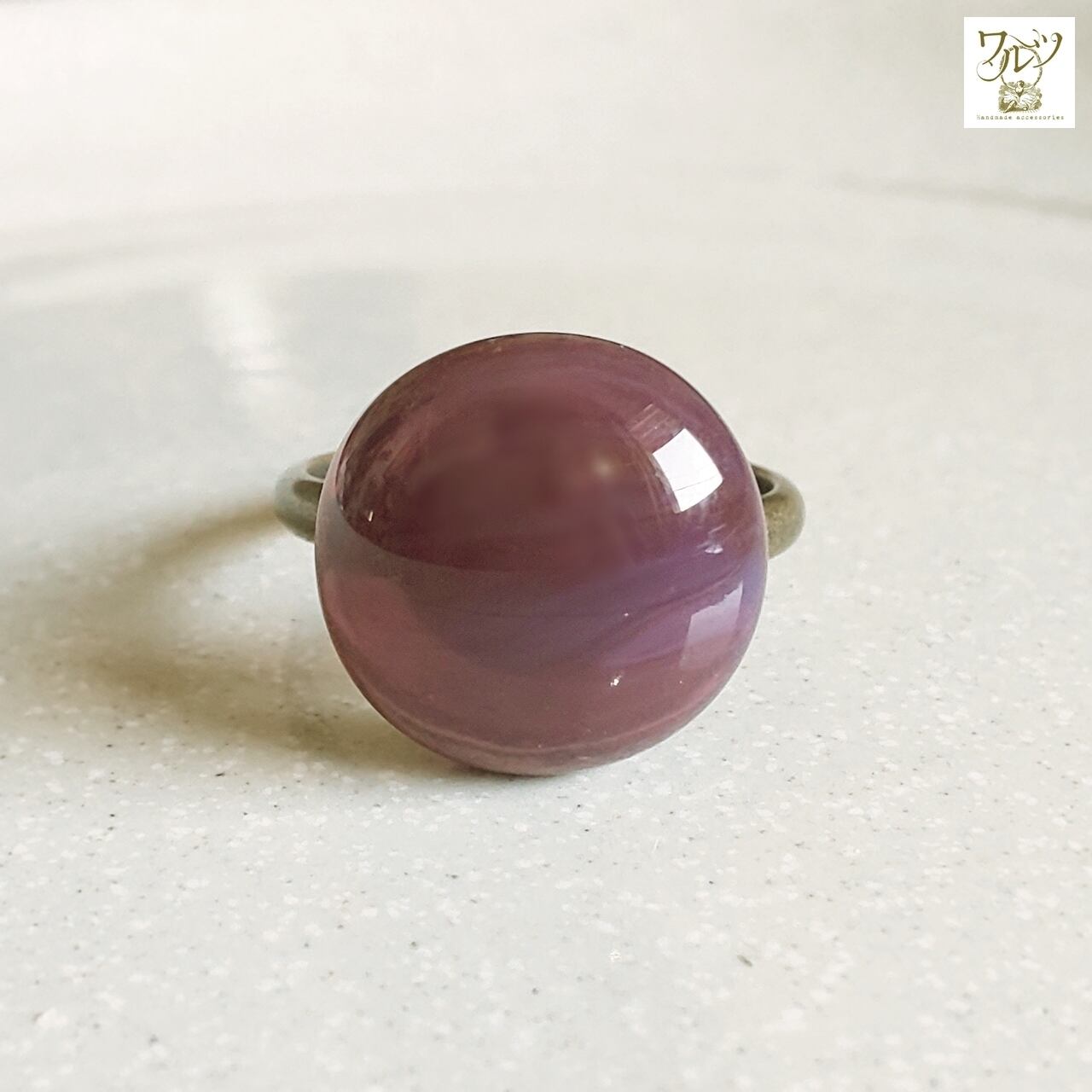 12号~のフリーサイズの指輪です。金具の色は金古美(ブラウン)です。