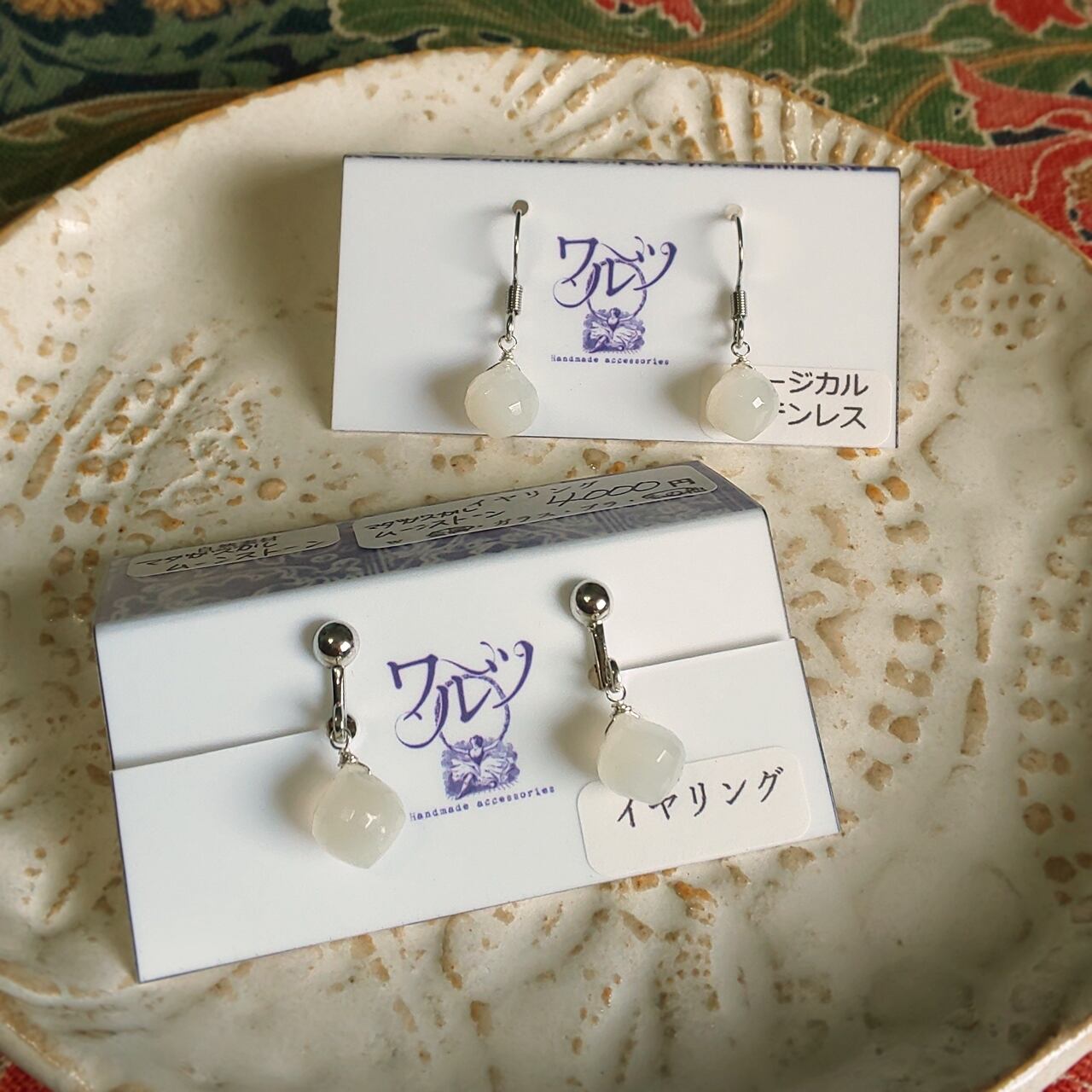 ホワイト ムーンストーン ピアス【サージカルステンレス】