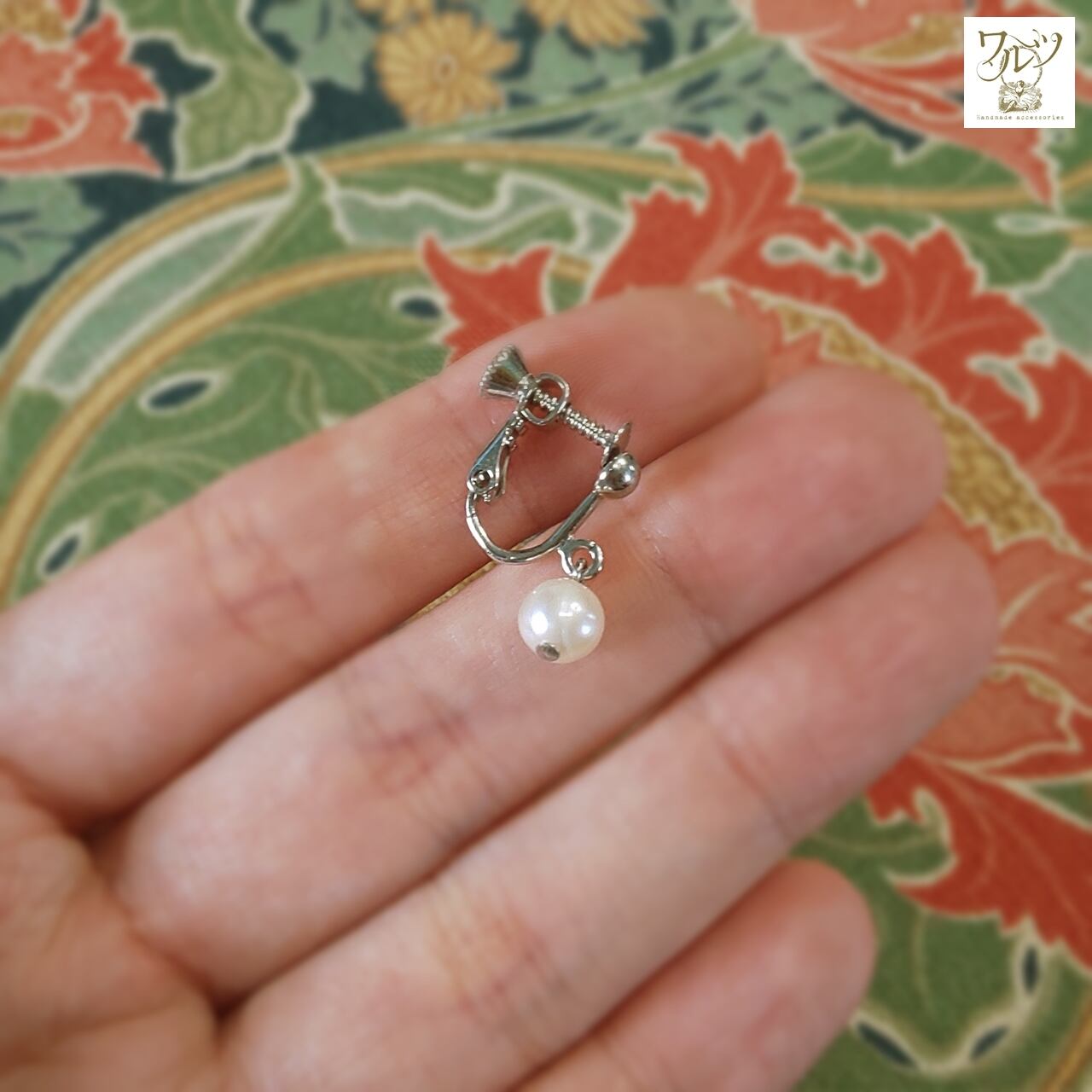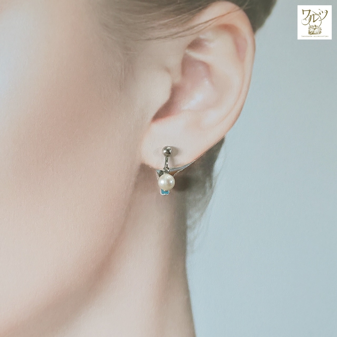 こちらは小さなパールに合わせ、小さいイヤリングパーツを使用しています