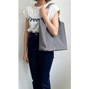 横向きでA4サイズファイルがすっぽり入る合皮のバッグ。縦だとV字の部分から見えます。