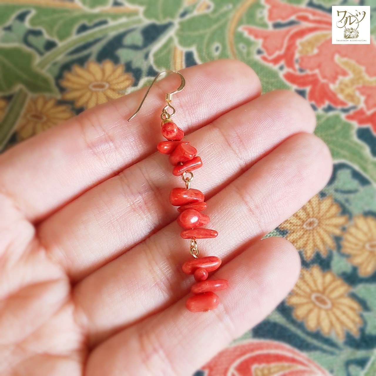 【素材】金属、ガラスビーズ、サンゴ(染め)