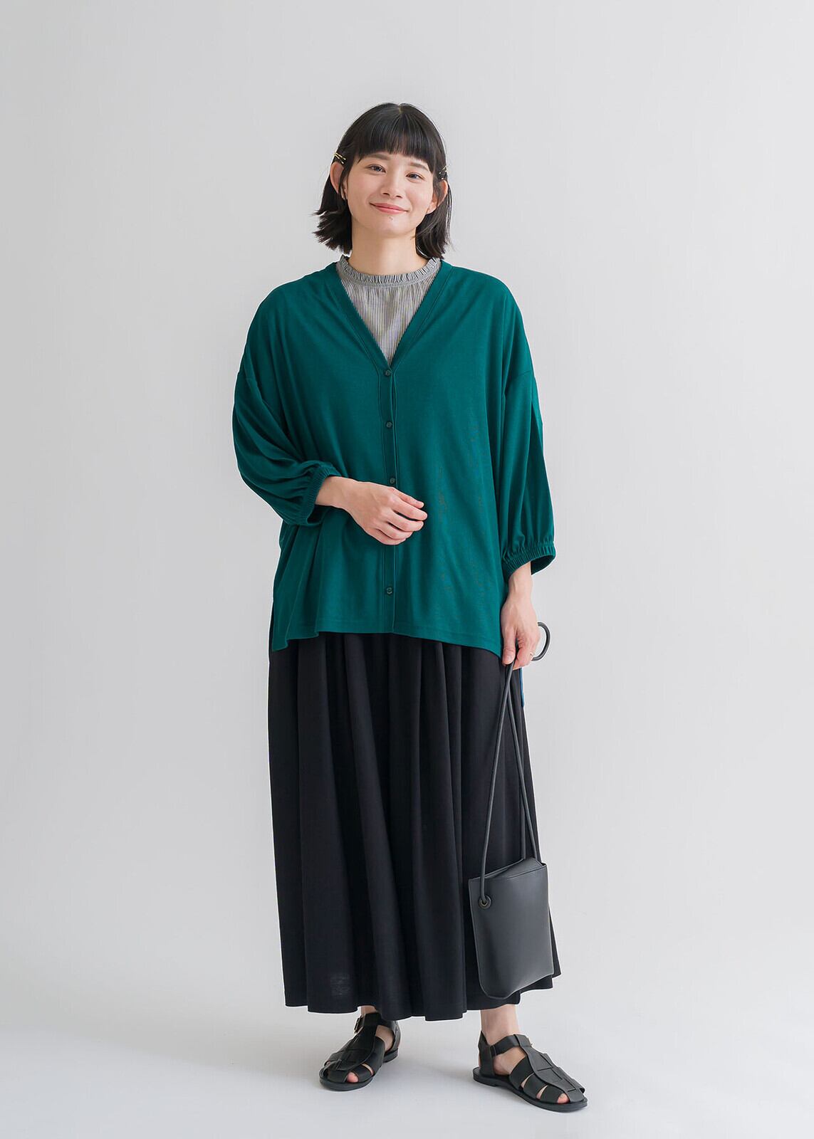 UV加工/接触冷感加工 Vネック袖ボリュームカーディガン【2色】