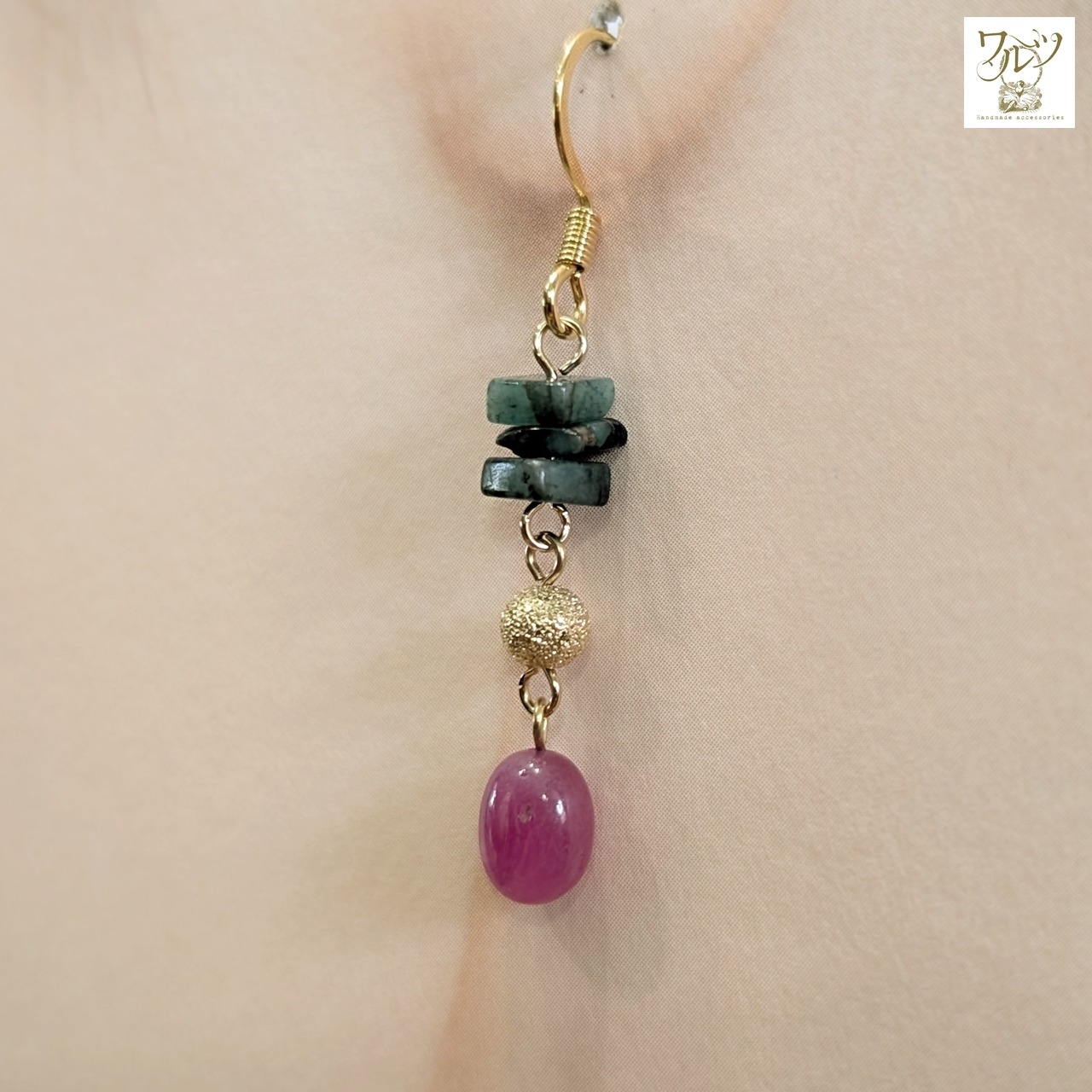 ルビー×エメラルド ピアス【サージカルステンレス】